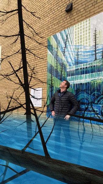 "Become immersed in an environment where urban and wild environments collide in search of growth. The artists combine melting glaciers, burnt trees and flooded streets to ask pressing questions about our future. How will we adapt and grow in the face of rising temperatures and water levels? What is truly at stake as our climate changes--the planet or humanity?"After its run, we installed the work outside in the streets of Cobourg.